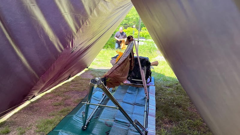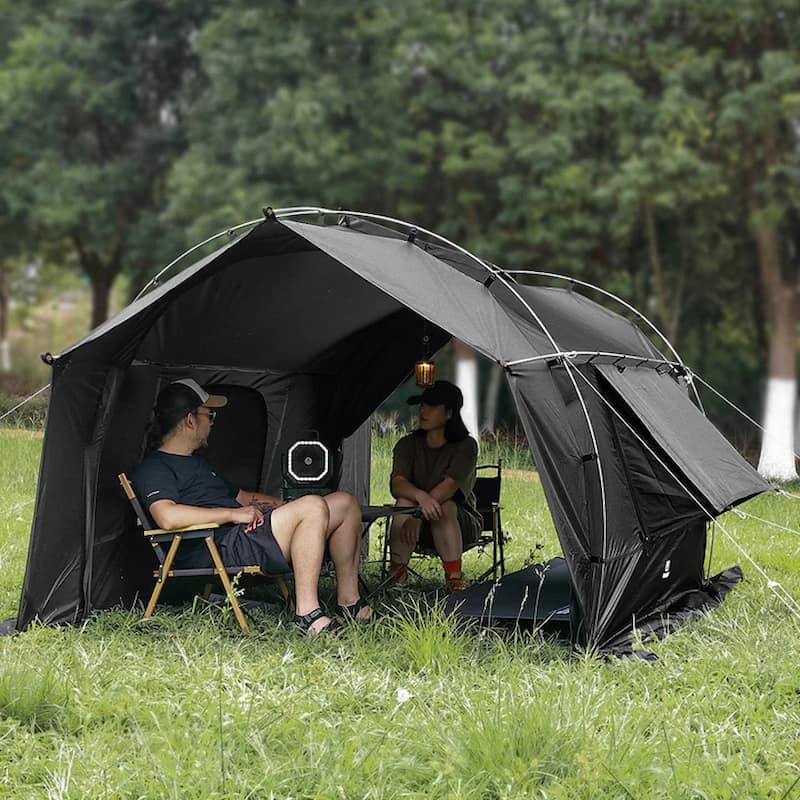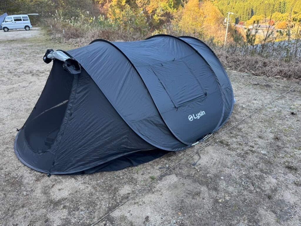 最初に彼が手に入れたのは、5人用の巨大なポップアップ式テントでした。