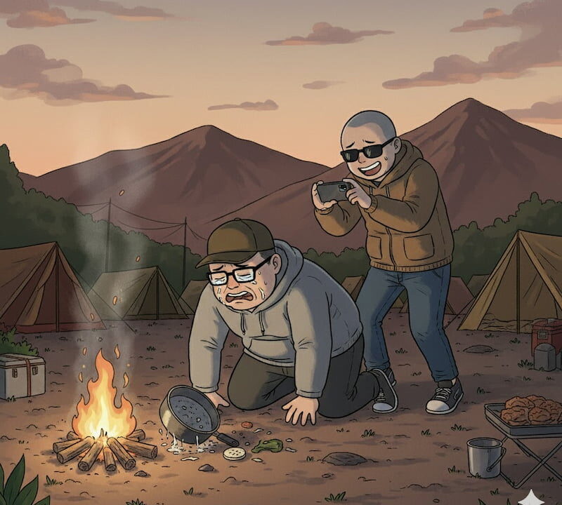 ここで怒っても、せっかくの楽しいキャンプが台無しになるだけだ。 こぼれたラーメンは、もう戻ってこない。 なら、この「しくじり」を楽しまないと損だ。