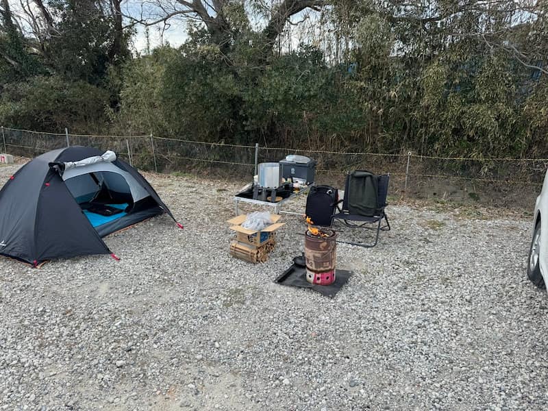 季節は真冬の2月。 場所は、吹きっさらしの海辺のキャンプ場、愛知県美浜町にある「浜オートキャンプ場」。 そして、天気予報は風速7メートルを超える大荒れの予報。