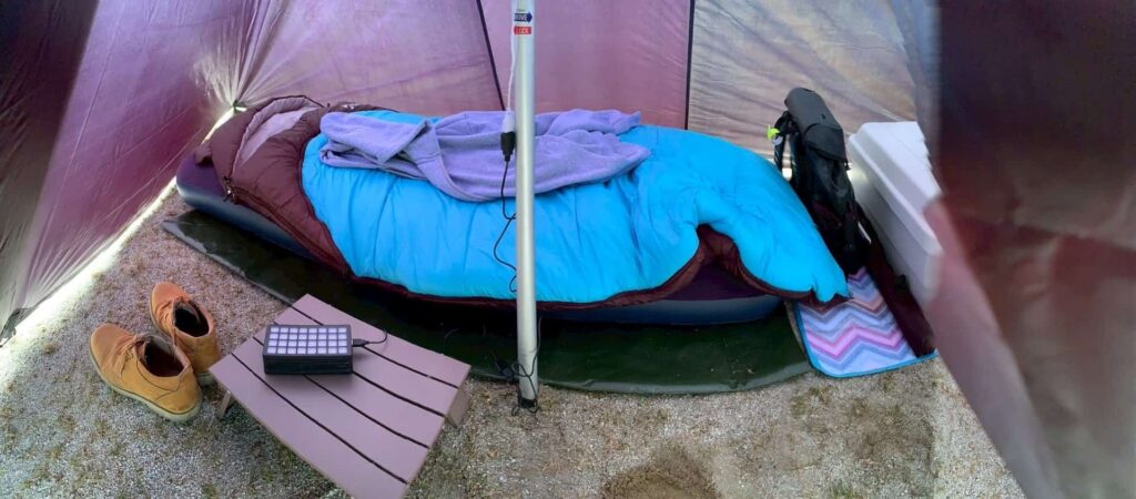 ▼大きめの寝袋とシングルサイズのエアーベッド