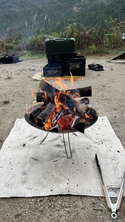 寒空の下、焚き火の前で、無防備に眠る、体重100kg超の巨大な友人。静かなキャンプ場に、彼の、かすかないびきと、燃える焚火の音だけが響いていた。