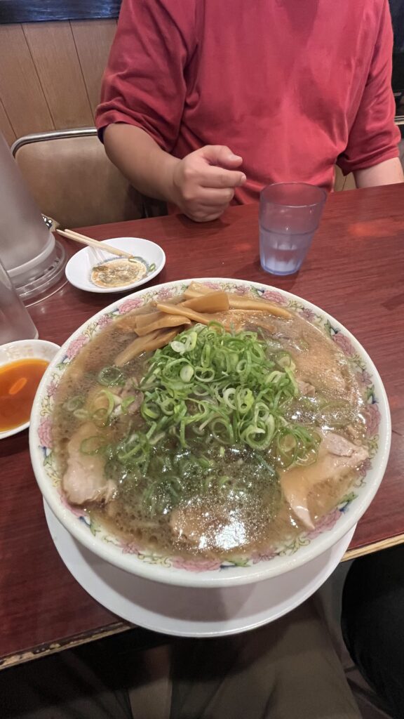 朝、僕の車でポコさんを迎えに行って、いざ京都へ。合流して最初の目的地は、ポコさんおすすめの「本家 第一旭」。行列30分の末にようやく着席。僕は特製ラーメンと餃子を注文し先にラーメンがテーブルに届いた。もちろん期待通りのうまさだった。
