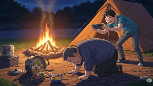 キャンプ 【しくじり観察日記6】キャンプ飯テロ失敗・シメのラーメン目前で、友人がもつ鍋を大地に還した話【~俺流キャンプ伝説・第5話~】 2025年8月28日 ななかふぇ 欲望のピーターパン~アラフォーおじさんのしくじり観察日記~