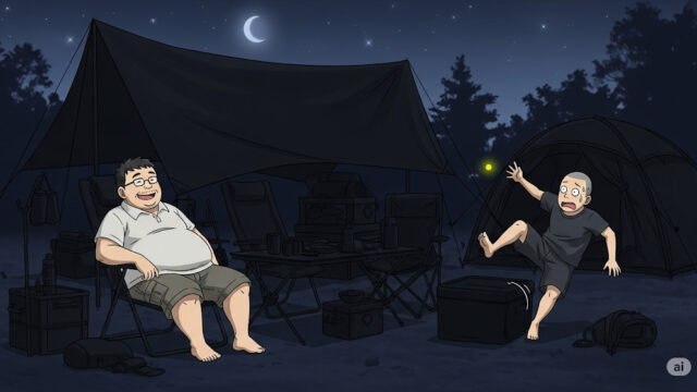 キャンプ 【しくじり観察日記9】友人の「俺流キャンプ」哲学 ~黒き掟と、反逆の魂~【~俺流キャンプ伝説・第8話~】 2025年9月8日 ななかふぇ 欲望のピーターパン~アラフォーおじさんのしくじり観察日記~