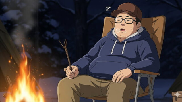 キャンプ 【しくじり観察日記7】キャンプ失敗談・友人が冬キャンプで飲み過ぎて寝落ち!100kg超の巨体を救出せよ【~俺流キャンプ伝説・第6話~】 2025年9月1日 ななかふぇ 欲望のピーターパン~アラフォーおじさんのしくじり観察日記~