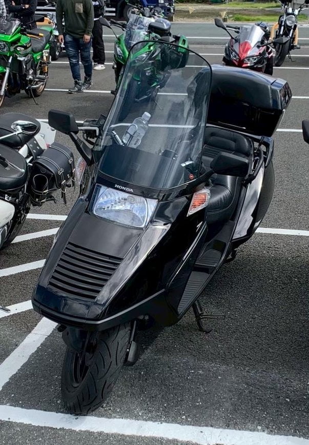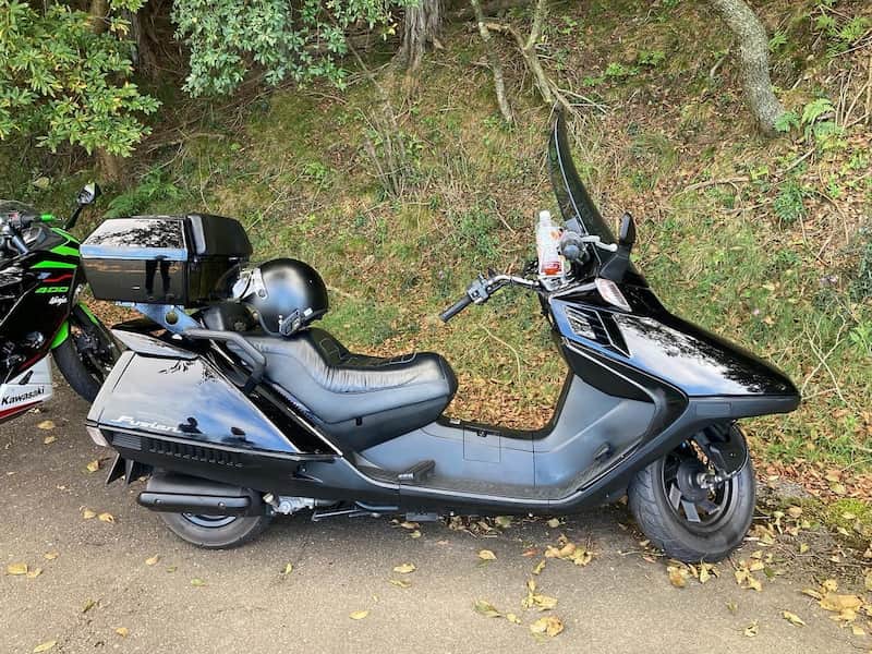 そして、彼が新しい相棒に選んだのは、こだわりのカスタムが施された、漆黒のビックスクーター「ホンダ・フュージョン」。
