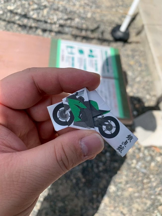 ▼思い出のポコさんの愛車と大歳神社のおみくじ