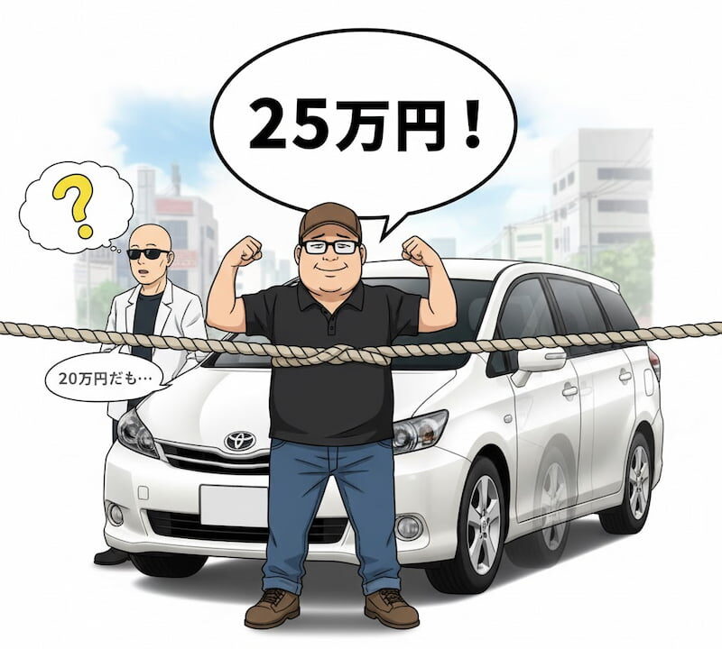 (20万円では安すぎて、友人の情けみたいでカッコ悪い。5万円上乗せして、25万円っていうちゃんとした取引やったことにしとこか)